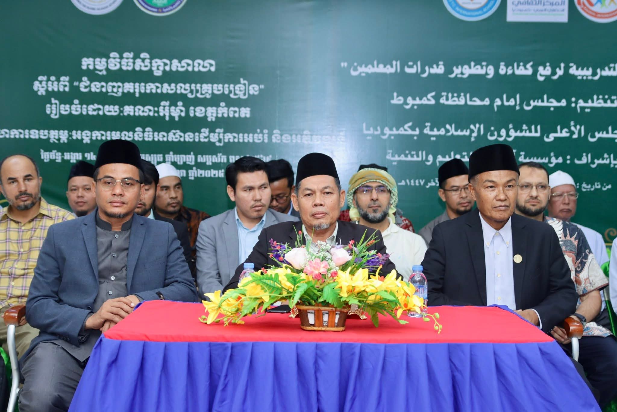 ខេត្តកំពត ៖ លោក អះម៉ាត់យះយ៉ា អារ៉ហ្វាត ភូឈួយទី១ ជាតំណាងដ៏ខ្ពង់ខ្ពស់អ្នកឧកញ្ញា សុះ កំរុី ចាងហ្វាងនៃគណៈដឹ1កនាំជាន់ខ្ពស់នៃសាសនាឥស្លាមកម្ពុជា នាព្រឹកថ្ងៃចន្ទ ទី០៦ ខែតុលា ឆ្នាំ២០២៥ បានអញ្ជើញជាអធិបតីបើកសិក្ខាសាលាស្ដីពី ជំនាញគរុកោសល្យគ្រូបង្រៀន សម្រាប់គ្រូបង្រៀនខ្មែរឥស្លាមក្នុងខេត្តកំពត និងខេត្តកែប។