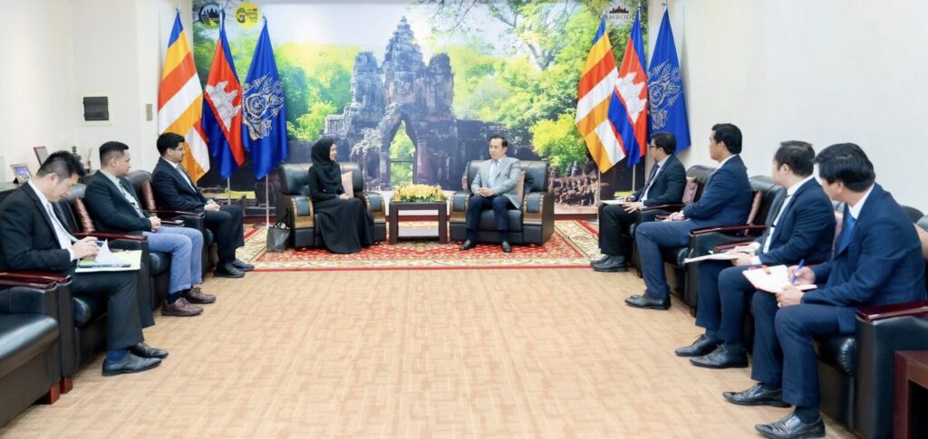 H.E. Mr. HUOT Hak, Minister of Tourism, granted a courtesy call to Ms. Sarah Lotfi Lajam, Group Managing Director (Singapore, Malaysia and Thailand) of Saudia Airlines, and her esteemed colleagues to exchange views to enhance tourism connectivity between Cambodia and the Kingdom of Saudi Arabia at the Ministry’s headquarters.